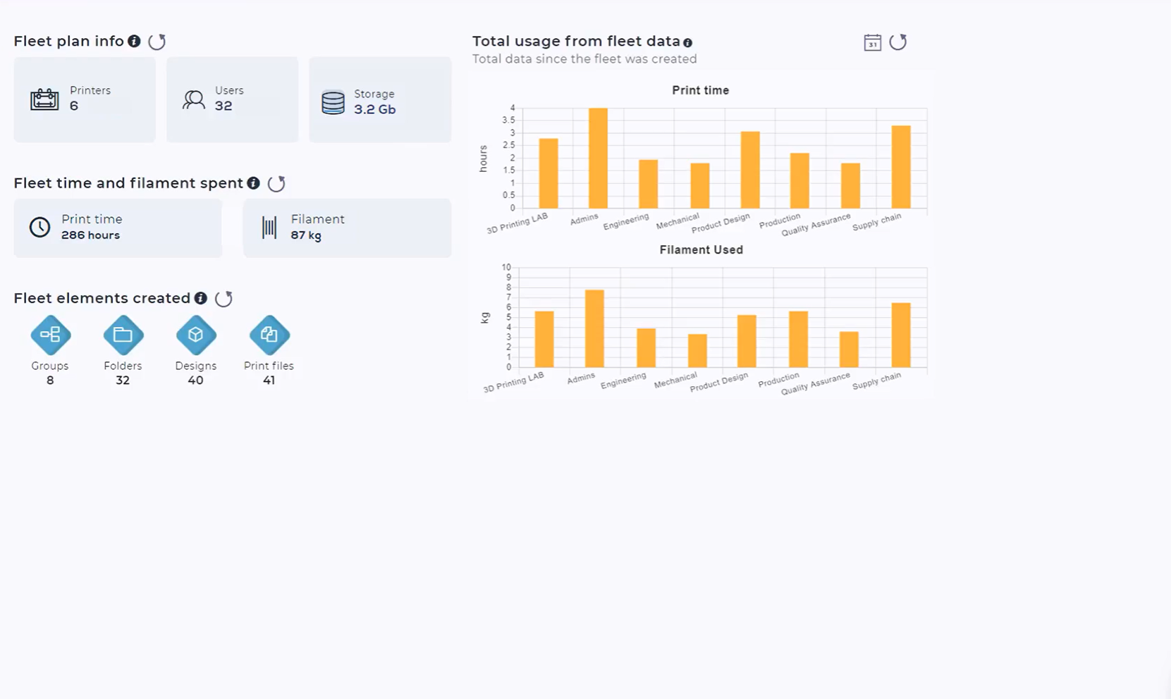 The Standard Cloud plan is ideal for those at the beginning of their 3D printing journey. You'll easily get accustomed to the variety of functionalities designed for your small business to become more efficient, organized and in the know about your 3D printing operations.