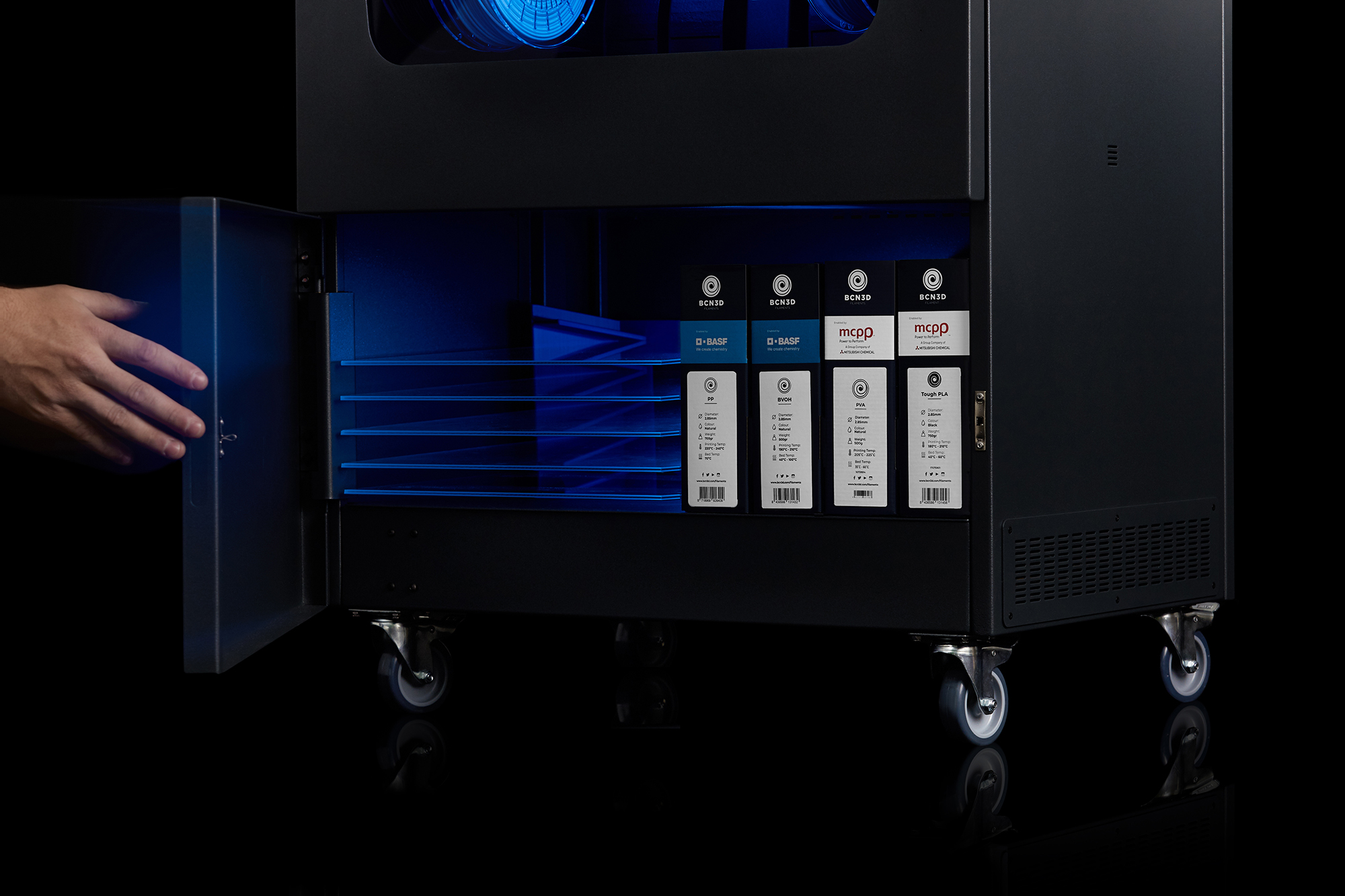 Le Smart Cabinet de BCN3D complète et améliore notre série d’imprimantes 3D Epsilon, présentée en novembre 2019 et renforcée en 2020. Cette solution est notre alternative aux autres méthodes de séchage qui peuvent laisser les filaments d’impression 3D endommagés et dégradés, et fonctionne en maintenant les matériaux à un niveau d’humidité optimal sans utiliser de chaleur potentiellement dommageable.